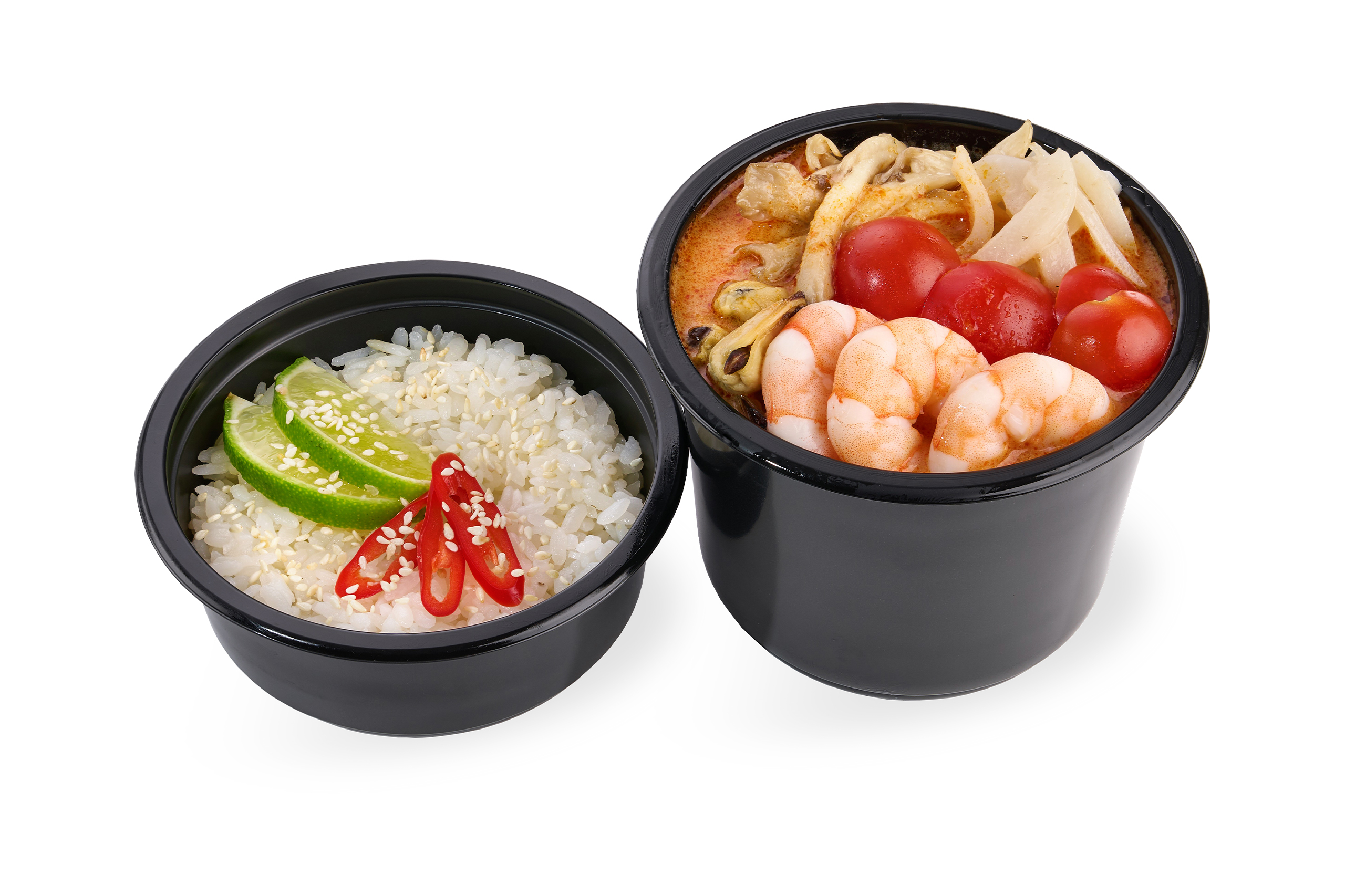 500мл · Креветка, грибы вешенки, помидоры черри, кальмар, мидии, кокосовые сливки, паста том ям. Подается с рисом, перцом чили, долькой лайма и кунжутом