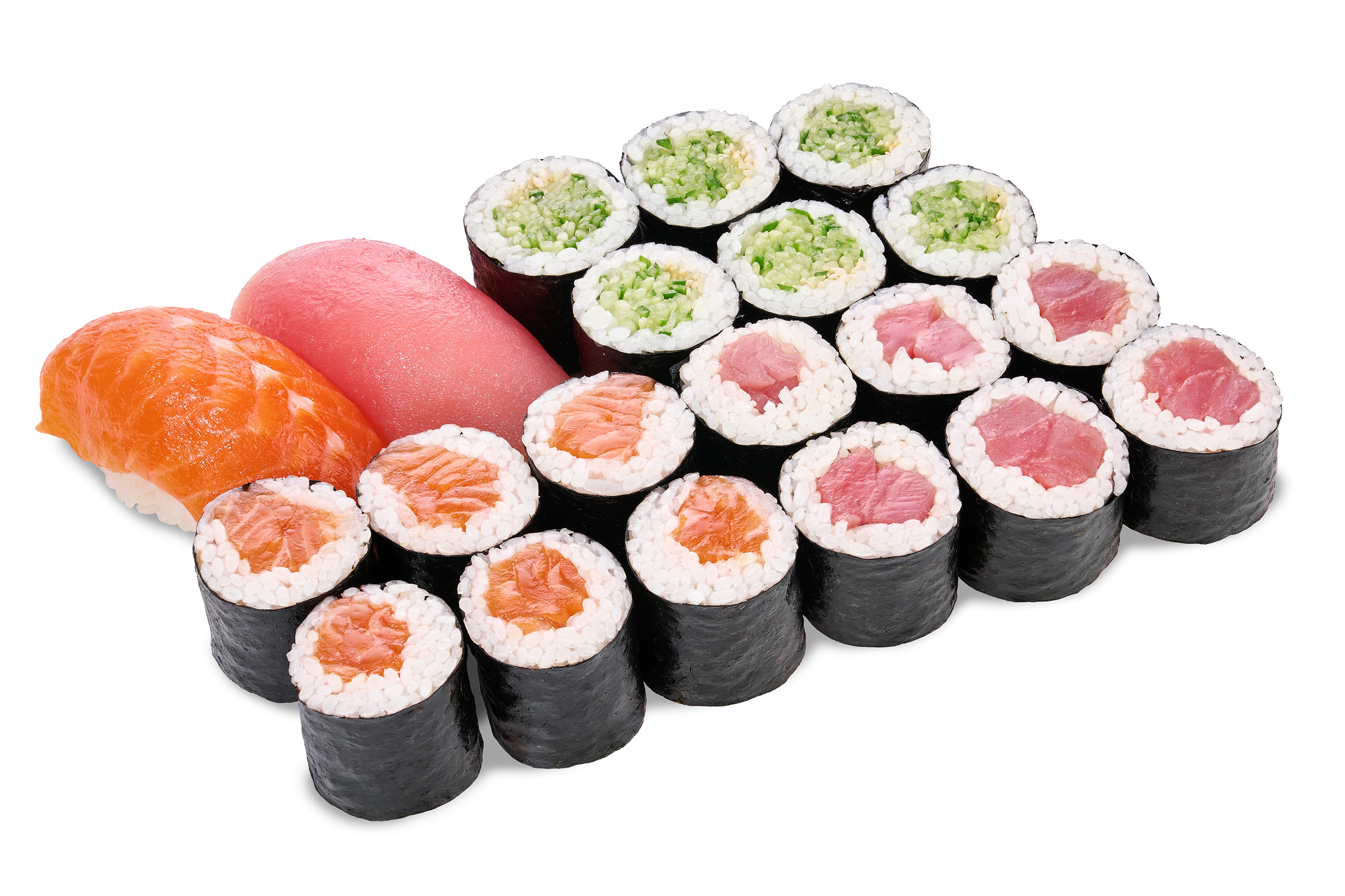 200г · Рис, нори, лосось, тунец, огурец, икра масаго