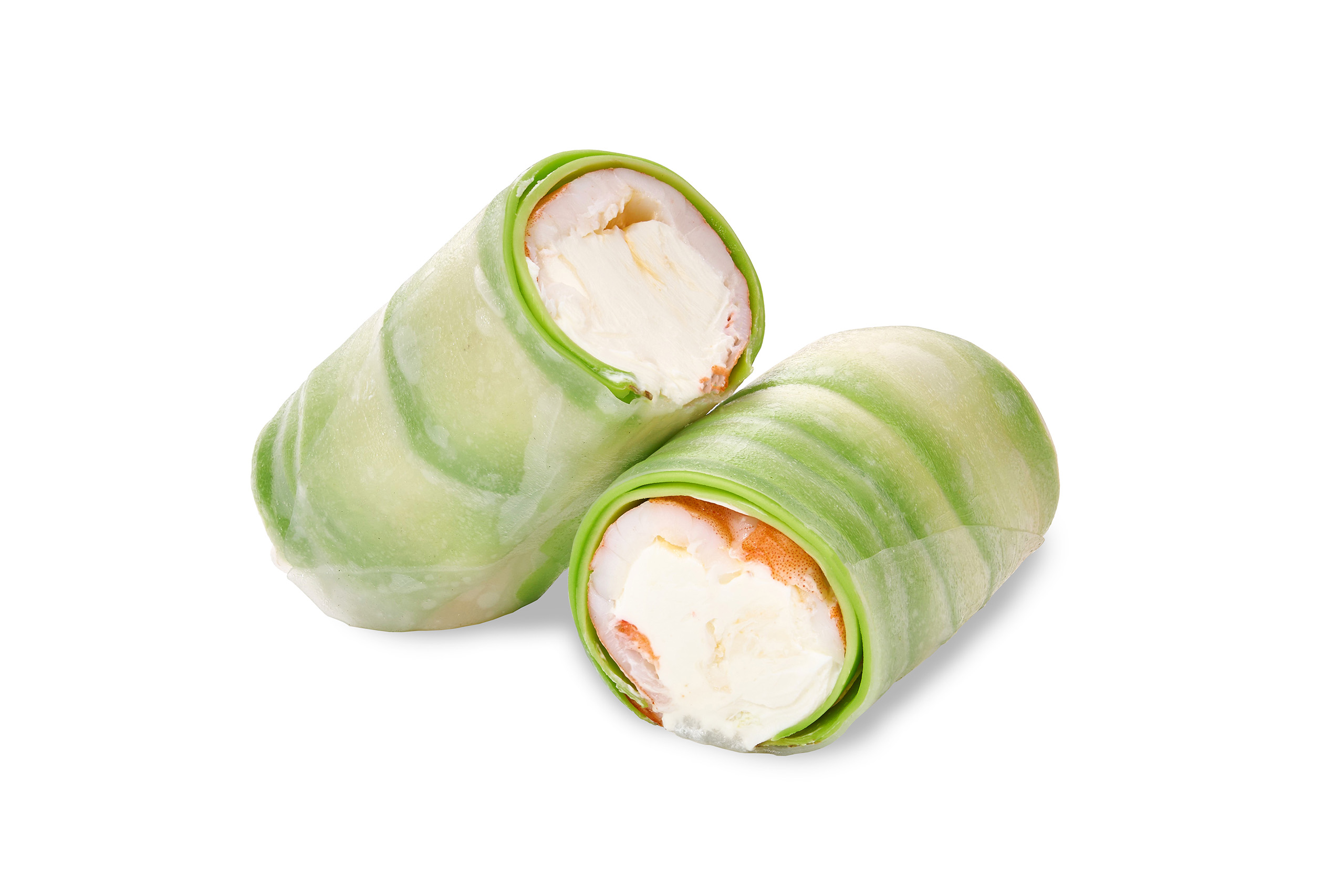 110г · Рисовая бумага, творожный сыр, лосось, огурец, шпинат