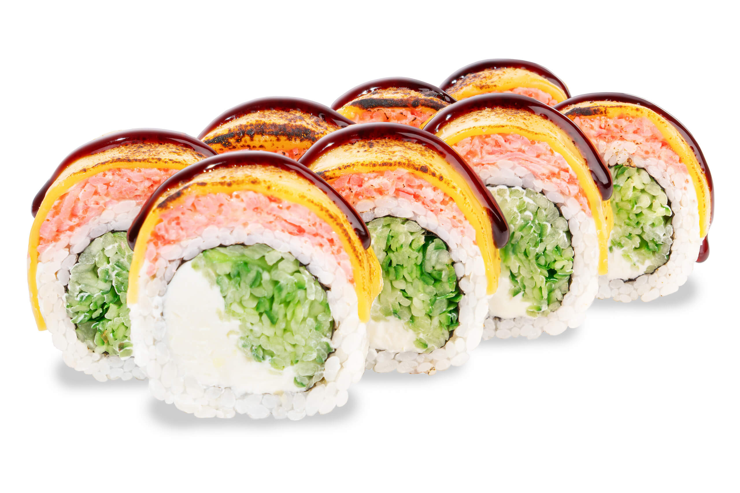 310г · Рис, нори, творожный сыр, огурец, крабовый замес, сыр чеддер, унаги соус