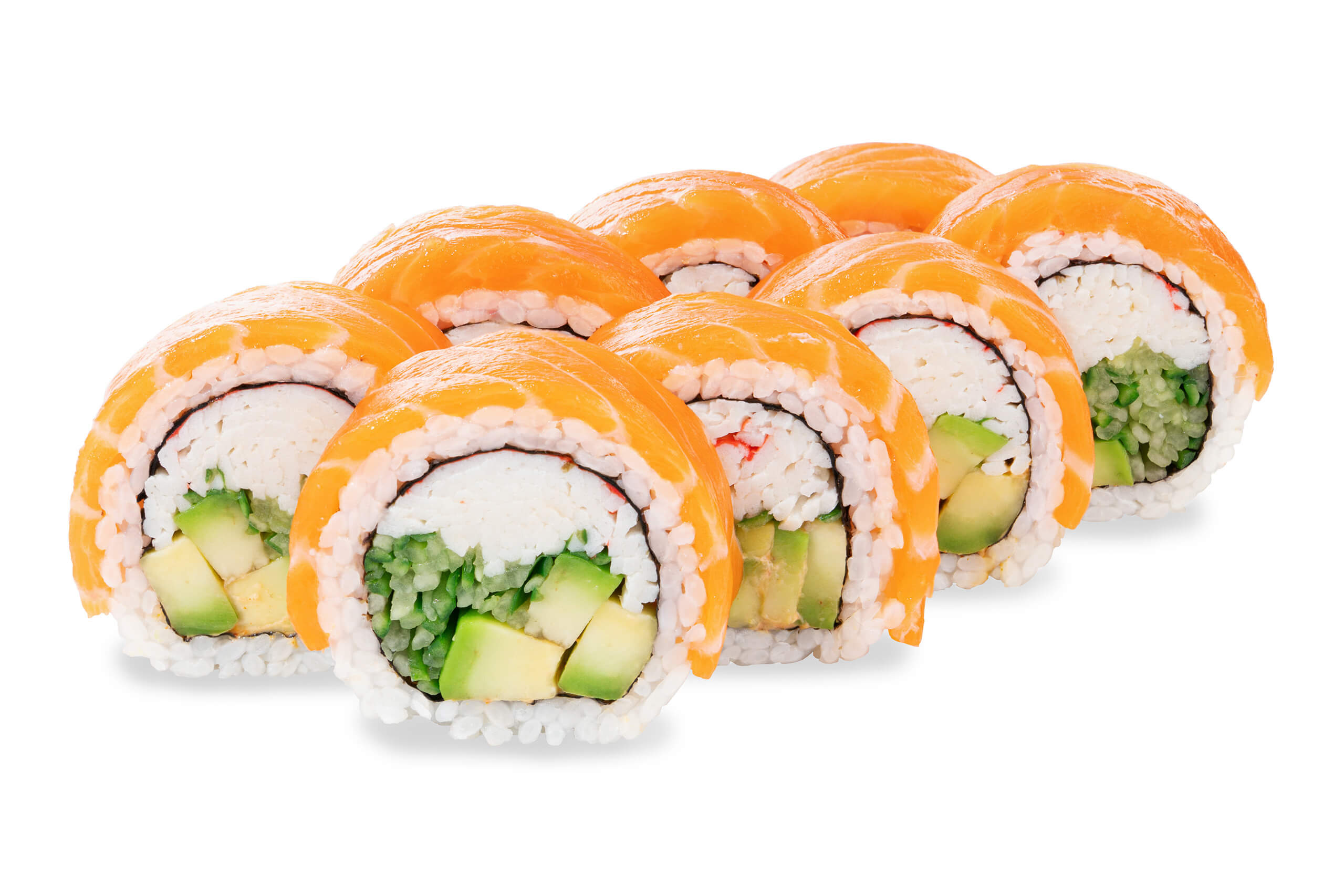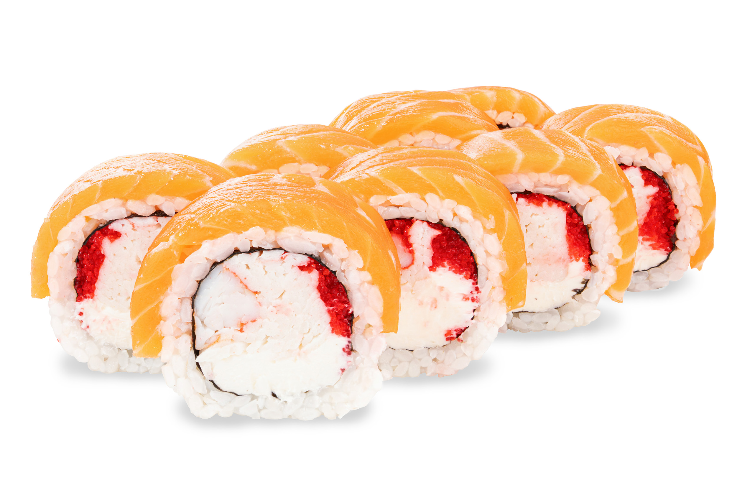 290г · Рис, нори, лосось, креветка, снежный краб, икра масаго, сыр сливочный