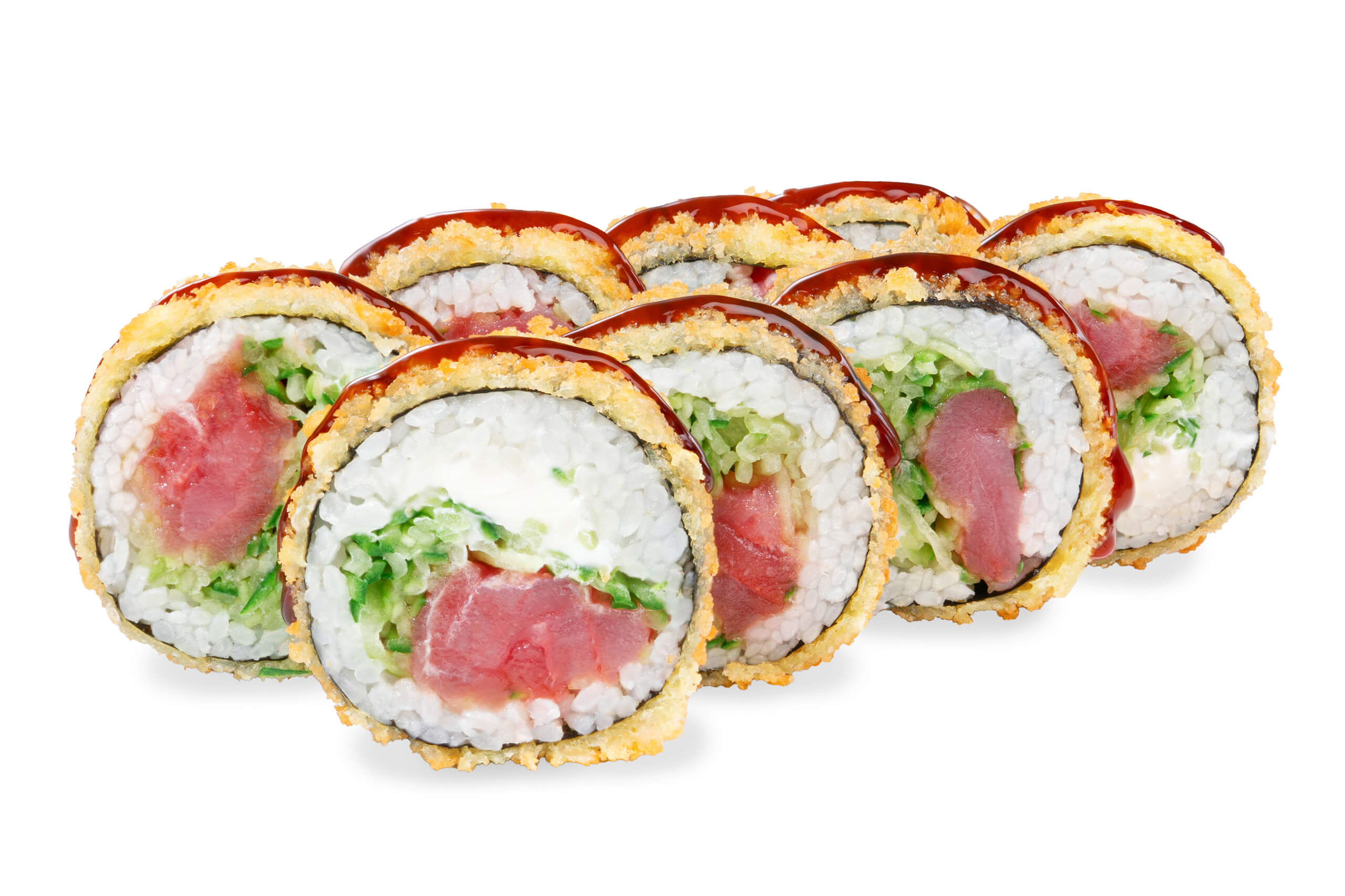 Рис, нори, творожный сыр, тунец, огурец, унаги соус